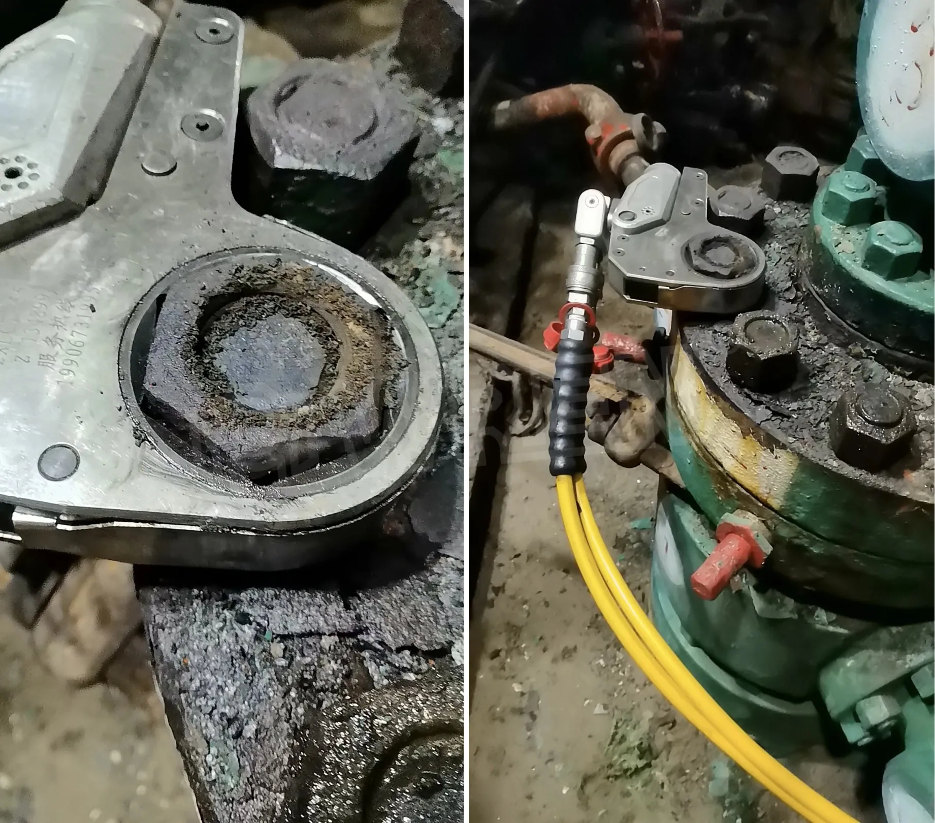 Récemment, un ingénieur WREN a contacté un client dans un champ pétrolifère. On a appris que certains équipements du site étaient gravement corrodés et que les boulons étaient souvent enlevés en les frappant avec une masse. Cette méthode traditionnelle est non seulement chronophage et laborieuse, mais aussi sujette à endommager l'équipement. Par conséquent, sur la base des conditions sur place, l'ingénieur WREN a apporté une clé hydraulique creuse de la série LOW et une clé hydraulique de la série LP3 avec une unité de puissance correspondante sur le site du client pour une période d'essai.
